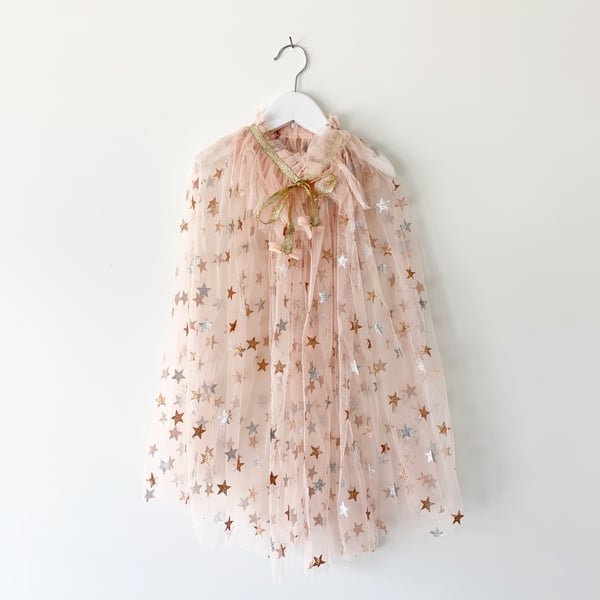 Magic cape - blush with glitter stars and ruffle collar