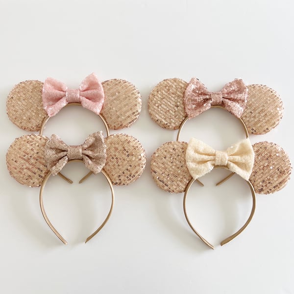 Gold sequin mouse ears with rose gold sequin bow